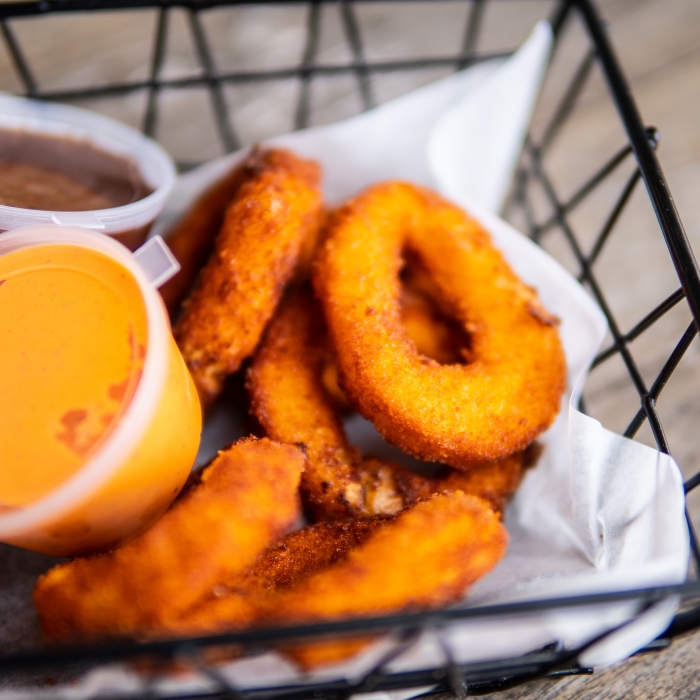 CRUMBED ONION RINGS$5.90(7pcs) served with Sweet Chilli