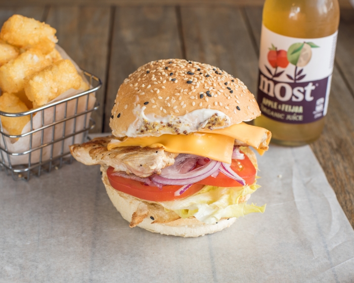 Grilled Chicken Breast, Pineapple, Streaky Bacon, Relish, Lettuce, Onion, Tomato, Free-range MayoCOMBO CHOICE