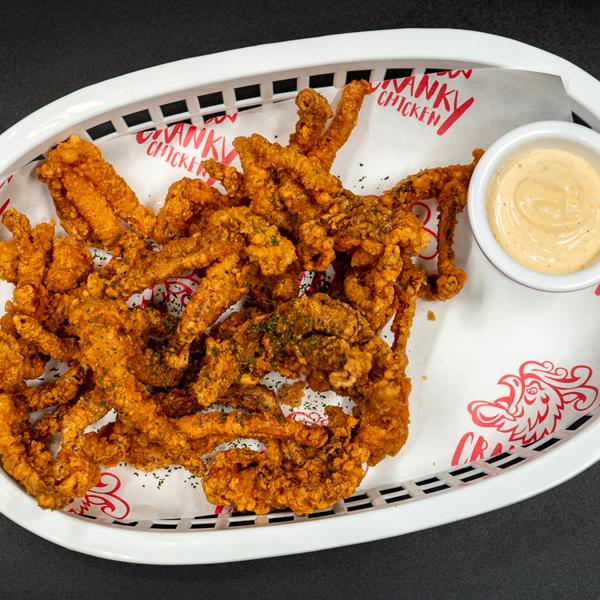 CRUNCH SQUID BITES$18Crisp, golden deep-fried calamari served with a creamy roasted garlic aioli for a delicious and savoury bite.×