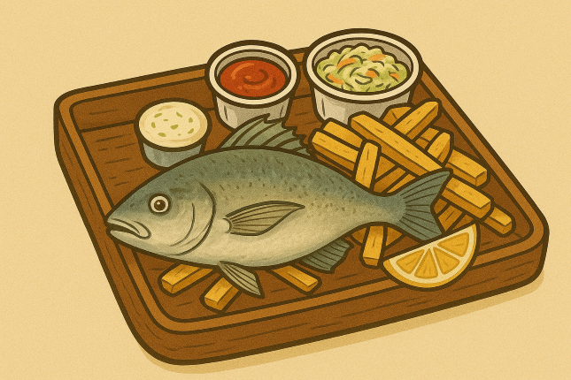 LEMON FISH MEAL$151 Lemon fish, homemade Chips, Coleslaw, small Tartare Sauce, small Tomato Sauce.Out of stock