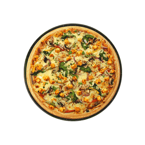 Pizza Sauce, Spinach, Onion, Capsicum, Pineapple, Corn, Mushroom, Olives, Jalapeno, Red Pepper, MozzarellaPIZZA BASE