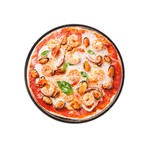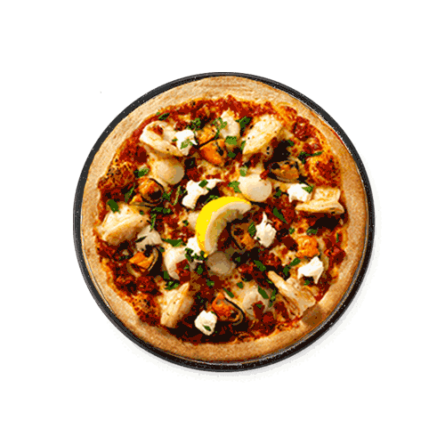 Pizza sauce, Shrimp, Calamari, Mussels, Onion, Tomato, Capsicum, Lemon pepper, Seafood sauce, MozzarellaPIZZA BASE