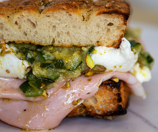 Bologna$18Mortadella, Buratta, Crushed Pistachio, Giovi Salsa Verde and Pistachio infused EVO (Extra Virgin Olive) oil