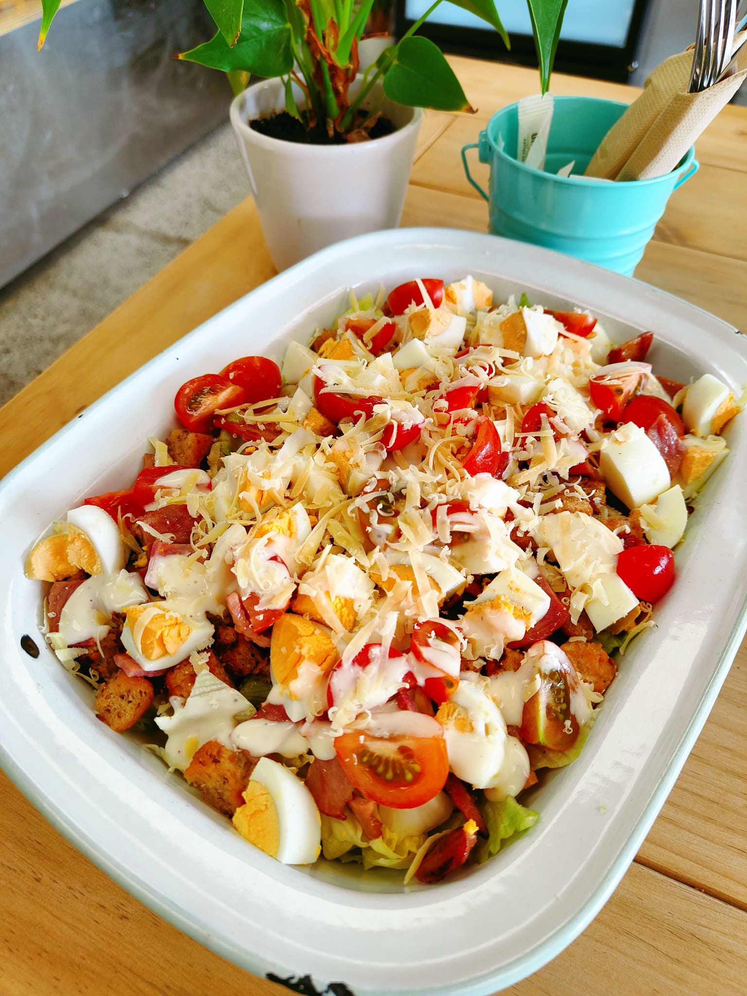 Blend potato, gherkin, olive oil and basil pesto ~ NOW MADE WITHOUT NUTS~SALAD PROTEIN ADDITIONS