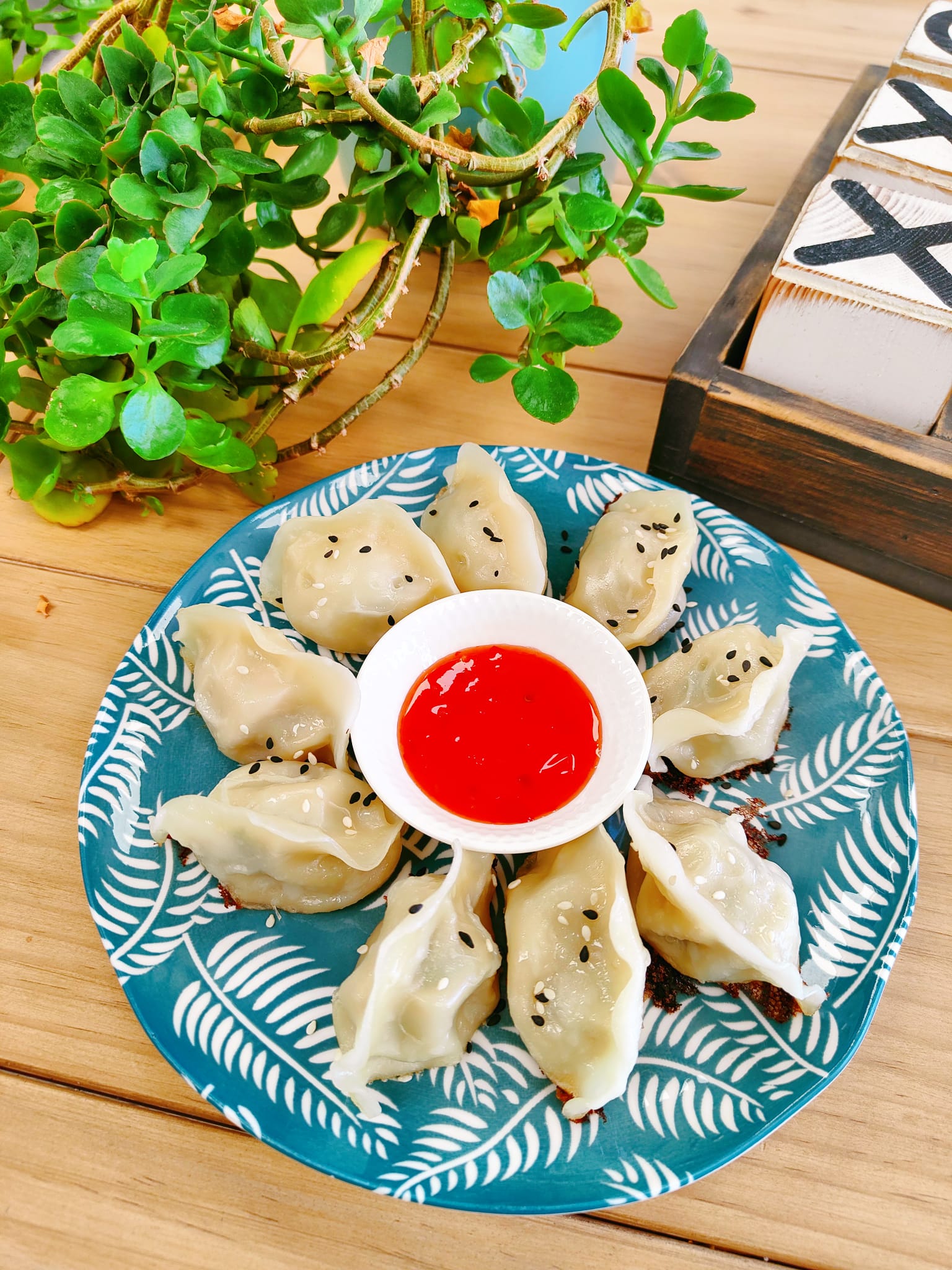 Authentic hot juicy dumplings steamed to perfection. Ingredients, Onion, Spring onion, cabbage, carrot, vermicelli, mushroom, soy bean oil, sesame oil, soy sauce, ginger, starch, salt, sugar, pepper & spirulina powderADD DUMPLING SAUCE