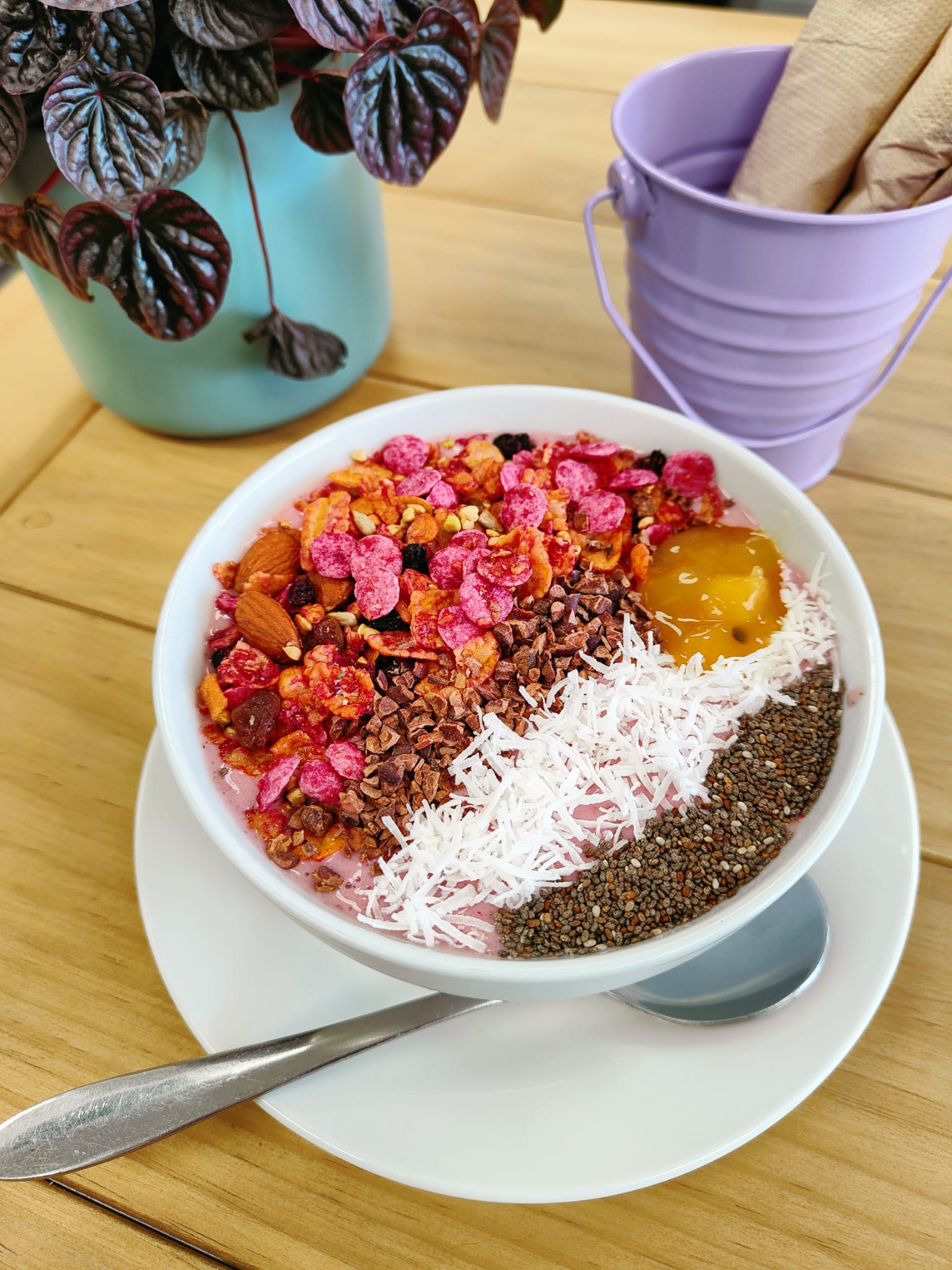 Blend – Acai, Mix Berries, Mango, Banana, Raw Cacao, Mango Nectar Toppings – Mix Nuts, Peanut Butter, Cacao Nibs, Toasted Muesli & Shredded Coconut.0