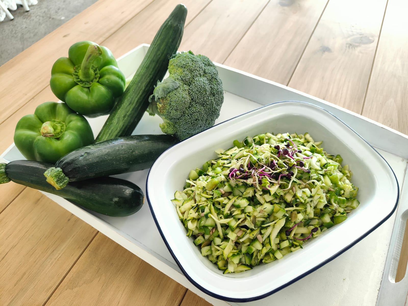 Blend celery, broccoli, courgette, green capsicum, almond, olive oil and lemon juiceSALAD PROTEIN ADDITIONS