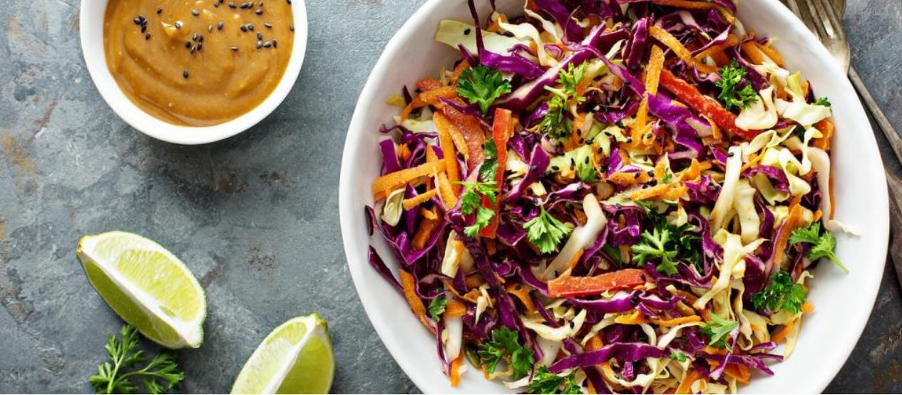 ~CONTAINS PEANUTS~ Blend carrot, purple cabbage, seasonal coriander or spring onion, mixed sesame seeds, sesame oil and lemon juiceSALAD PROTEIN ADDITIONS