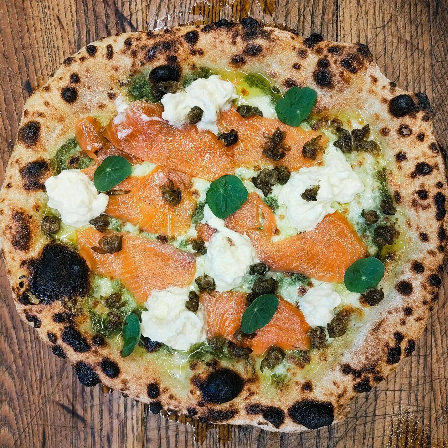 Salmone$33Pesto, Stracciatella, Fried Capers & Dill