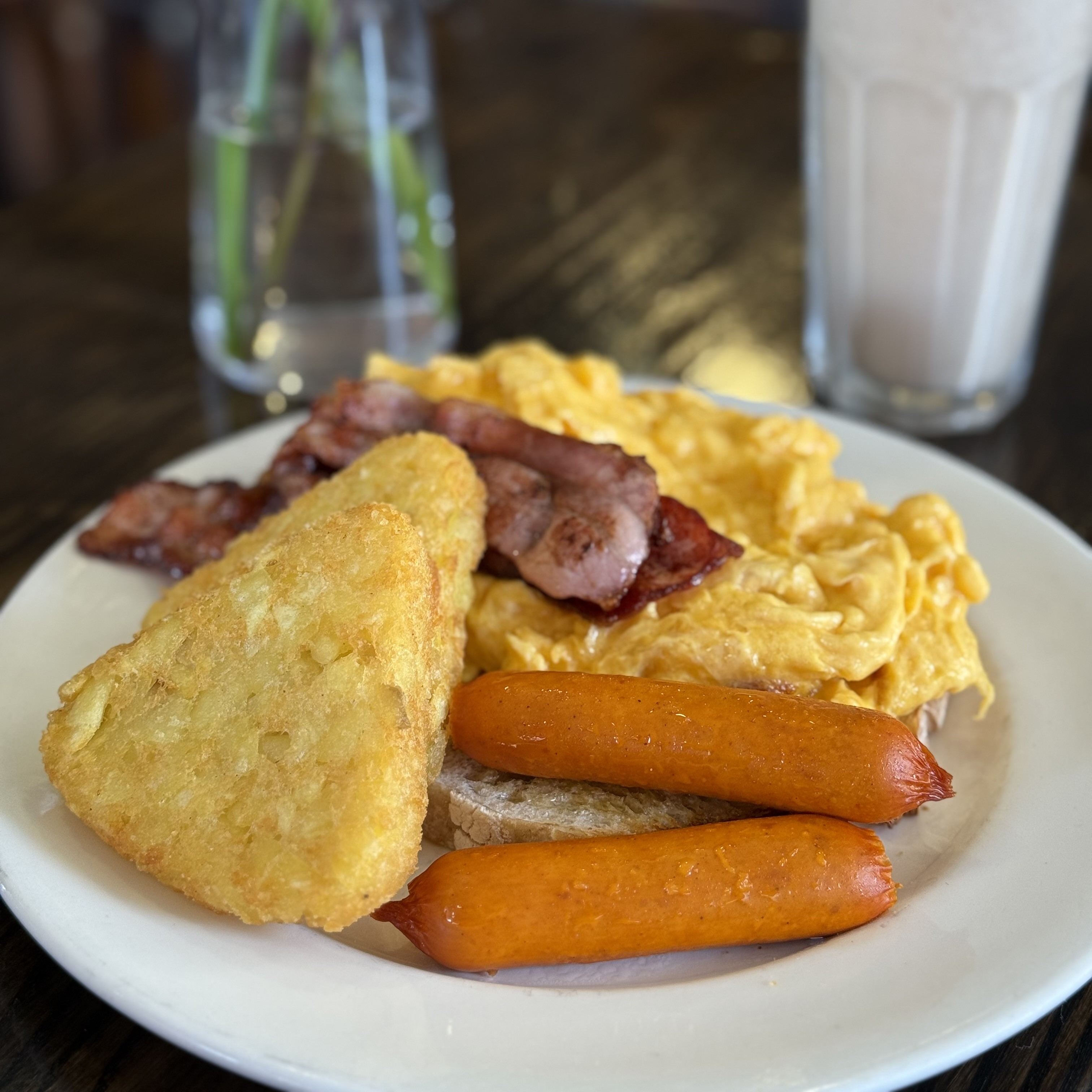 2 eggs on 7grain toast, bacon, hashbrown, kransky, slow roast tomato & garlic butter + mushrooms.HOW WOULD YOU LIKE YOUR EGGS?