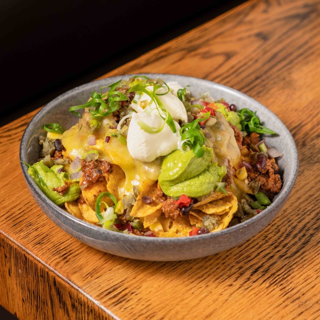 $25Cheese corn chips, chilli beef, guacamole, sour cream, salsa, jalapenos, cheese & spring onion