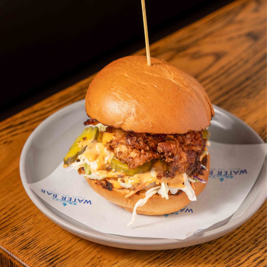 BUTTERMILK CHICKEN BURGER$23Tender and crispy buttermilk chicken, served with bacon, pickles, chipotle & slaw×