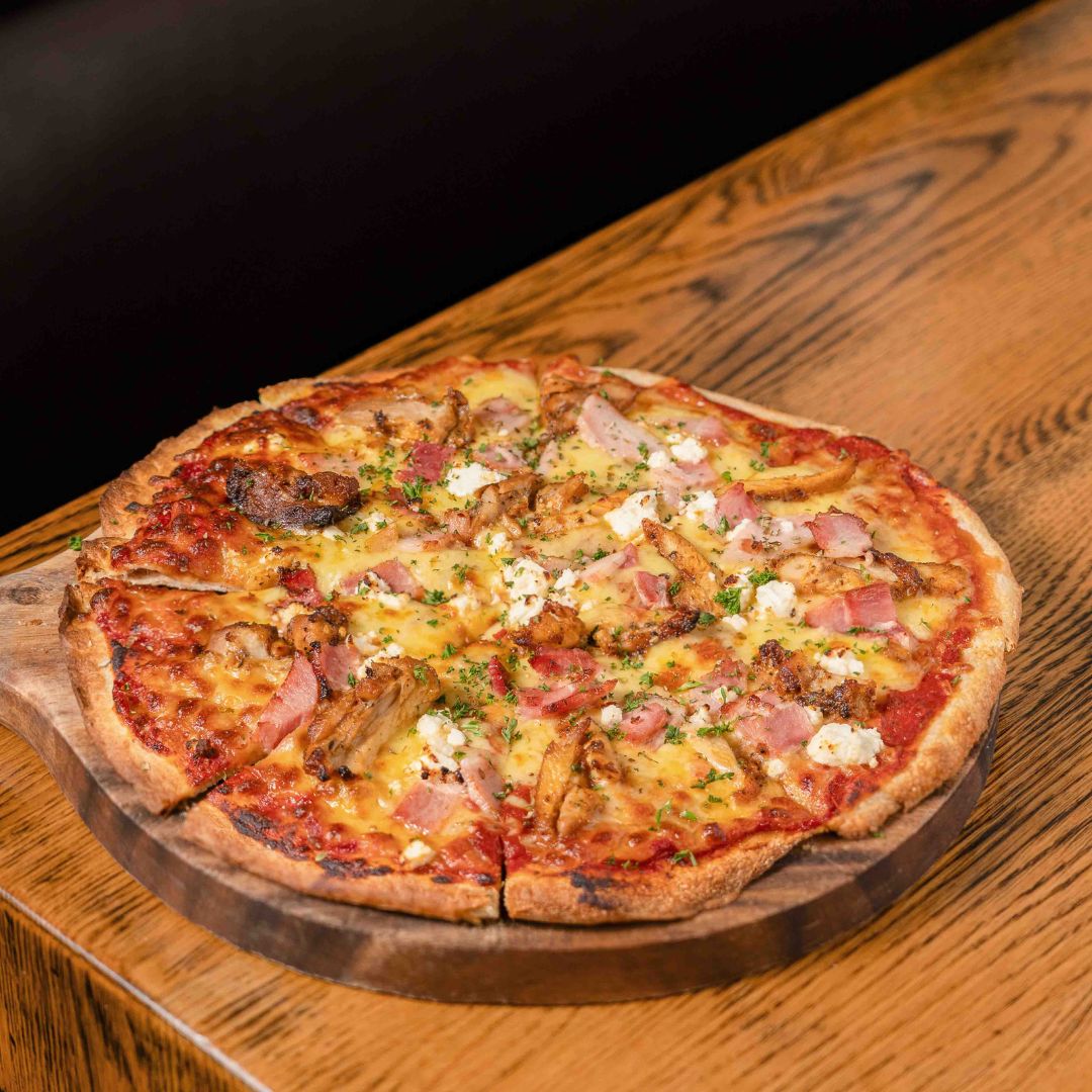 Marinated chicken, bacon, feta, mozzarella, tomato napoliADD TO PIZZA?