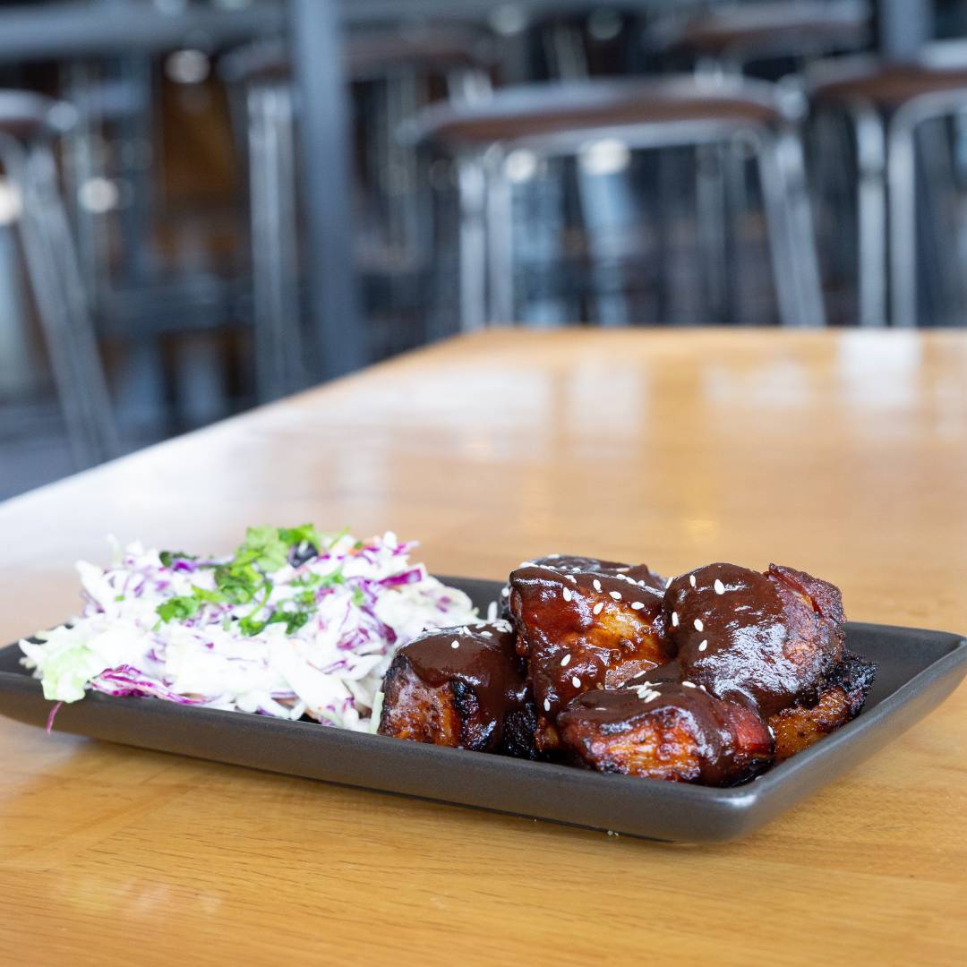 PORK BELLY BURNT ENDS$15Smoked pork belly bites served with smoky honey glaze & citrus slaw